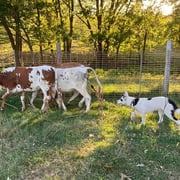The dog needs to be healthy to do a good job. Parents are OFA hip tested, as well as DNA panel tested for genetic disorders. Parents and pups need a high quality diet to be able to perform their duties on the ranch.