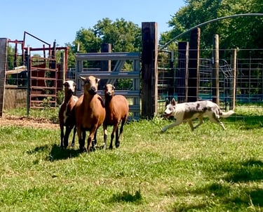 HTDIII SHEEP, HTAD SHEEP, HTAD CATTLE, HTAD DUCKS, She has 7 AHBA herding champion points with multiple high scores and high in trials.