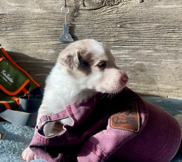 Puppies are raised using puppy culture as a guide for early stimulation and learning starting at 3 days old. Once they are old enough, they will also be exposed to age appropriate stock.